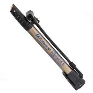 CO2インフレーターと16gカートリッジ1本のセット。仏・米式バルブどちらでも押し込むだけで注入可能なシンプル設計