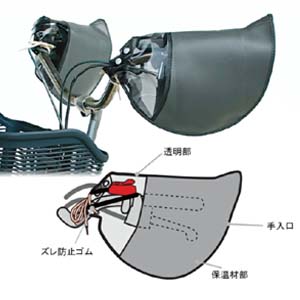 変速機に対応した透明窓付きハンドルカバー あたたかく保温力の高いボアを内装
