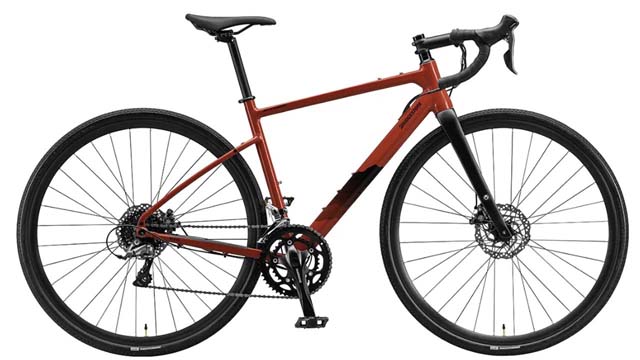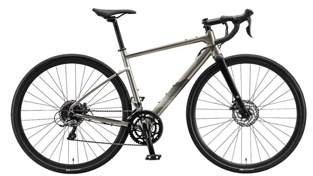 ディスクブレーキを装備し700×40cとボリュームあるタイヤが標準装備のクロモリグラベルロード。ハンドルバッグの装着を考慮したフレアバーを標準装備。ブレーキを除き、SHIMANO CLARISをフルスペック。